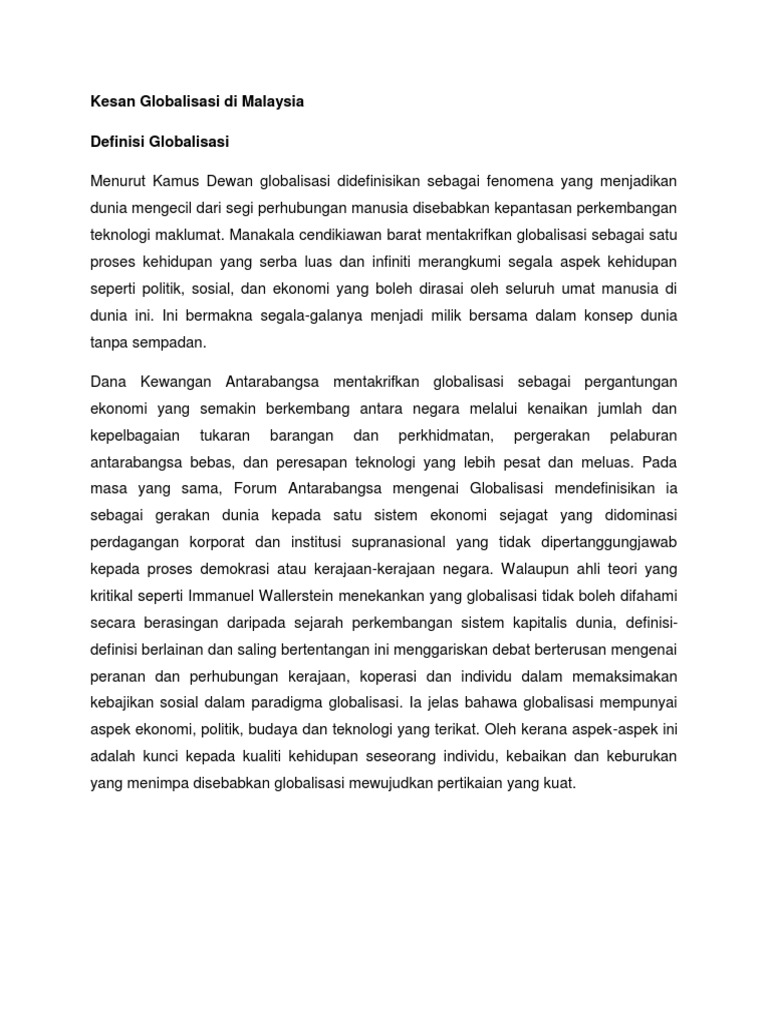 Kesan Globalisasi Di Malaysia Pdf