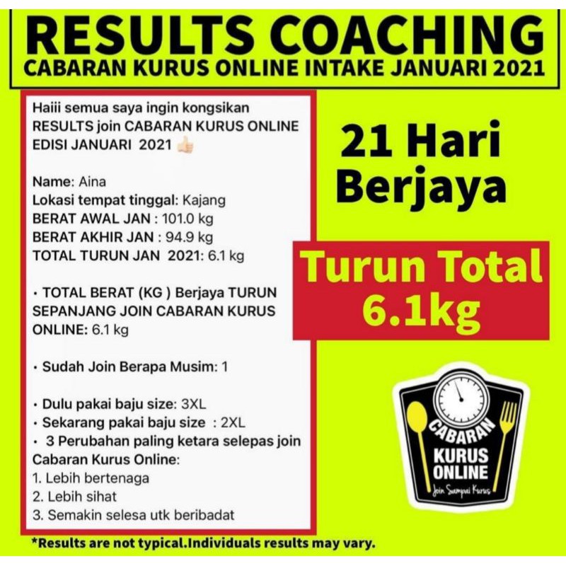 Hanya RM49 untuk seorang yuran pendaftaran untuk program ini merangkumi 7 hari group coaching 7 hari punya eat clean meal plan serta tip-tip dan maklumat berkenaan diet. Cabaran 21 hari untuk kurus. Cabaran 21 Hari Untuk Kurus.