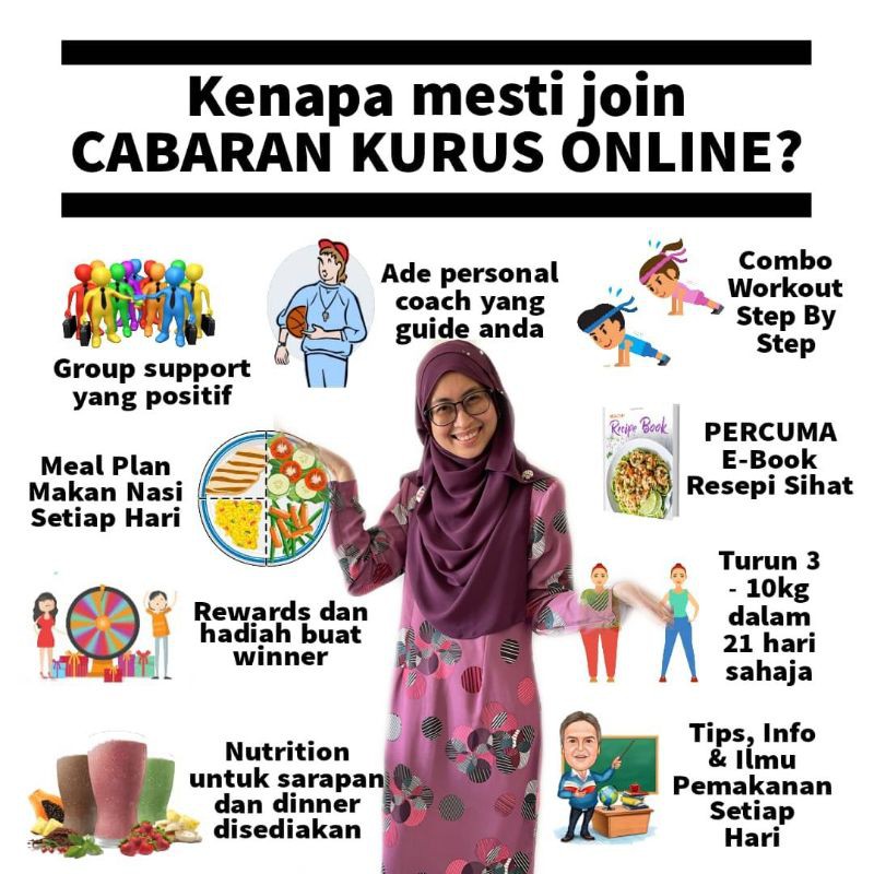 Ini adalah story pasal diet yang sedang dijalani penulis. Dah turun 3 kg pun. Cabaran kurus 21 hari Kepakaran kami adalah membantu sesiapa yang nak KURUS secara sihat kekal berat ideal sepanjang hayat secara ONLINE dengan berkesan selamat dan menyeronokkan.
