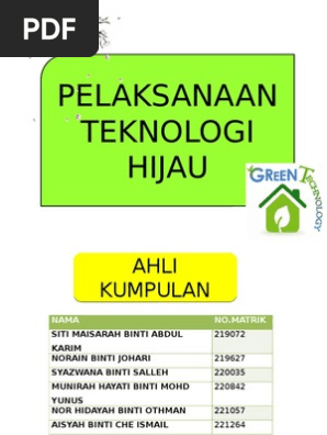 3-Apakah kepentingan penggunaan fotovolta. 1-Berikan dua kepentingan teknologi hijau. Selain itu ramai juga beranggapan bahawa kos pelaburan permulaan untuk teknologi hijau sangat tinggi.