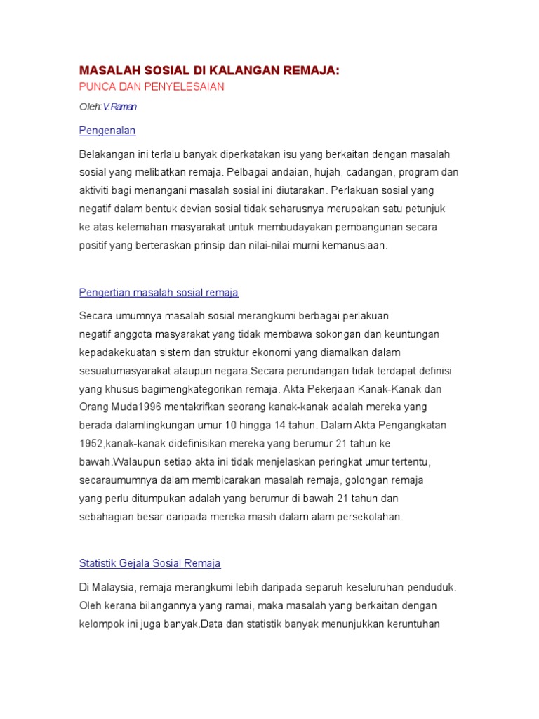 Masalah Sosial Di Kalangan Remaja Pdf