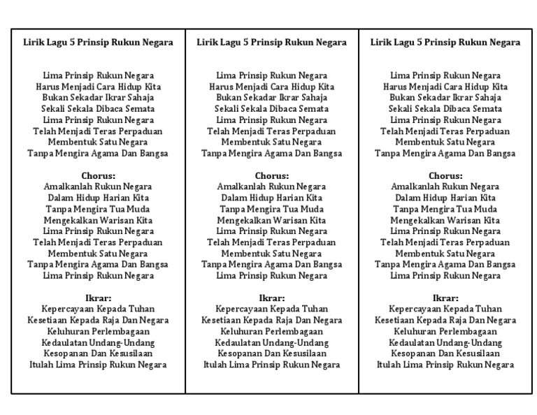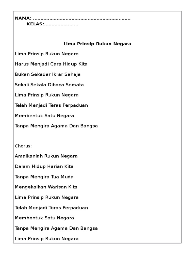 Rukun Negara Lirik 5 Prinsip Pdf