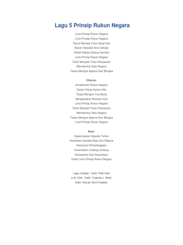 Lirik Lagu Lima Prinsip Rukun Negara Pdf
