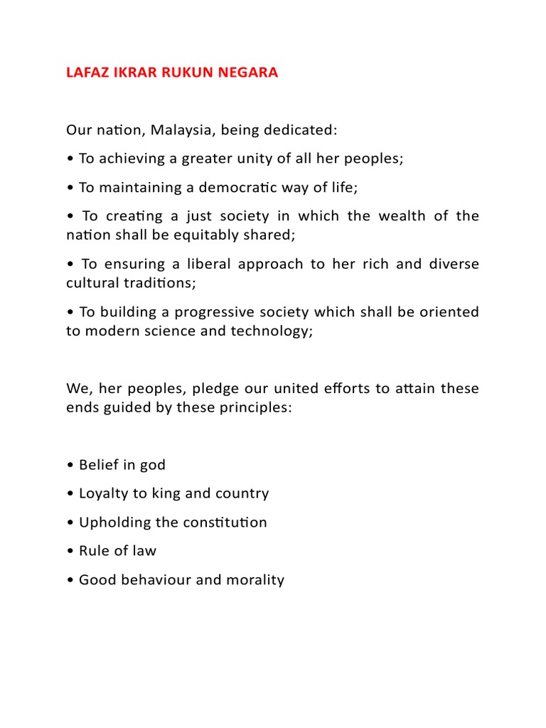 Akan menumpukan seluruh tenaga. Dan usaha kami untuk mencapai. Rukun negara malaysia in englishPrinciple Of Rukun Negara Malaysia.