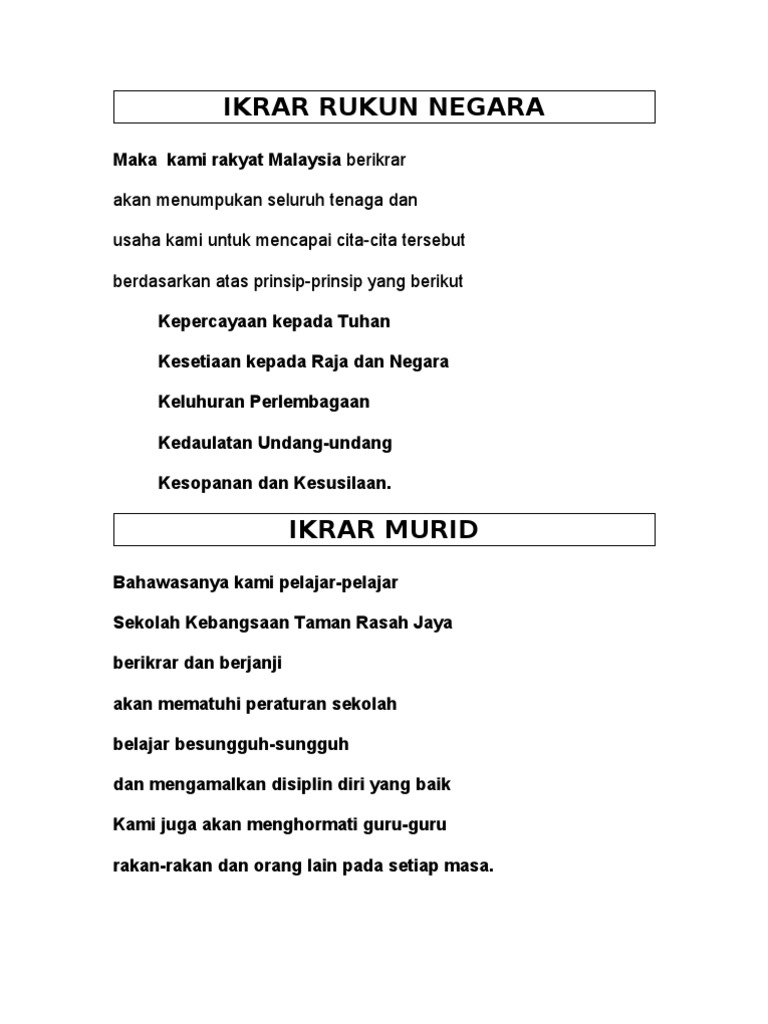 Lafaz Ikrar Rukun Negara English Pdf
